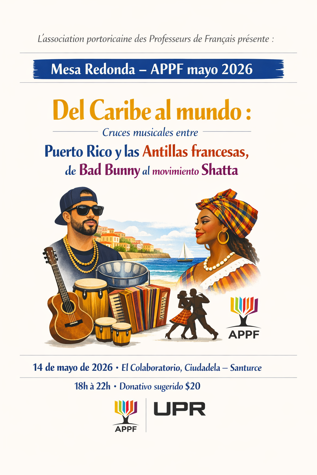 En las últimas dos décadas, el Caribe ha vuelto a ocupar un lugar central en la escena musical global. Puerto Rico, con su poderosa industria del reggaetón y la trap latino, se ha convertido en un epicentro cultural cuya influencia se extiende mucho más allá de la isla. Al mismo tiempo, en las Antillas francesas —particularmente Martinica y Guadalupe— se desarrollan movimientos musicales vibrantes que dialogan, directa o indirectamente, con las tendencias puertorriqueñas. Esta mesa redonda propone explorar esos cruces, tensiones y resonancias entre ambos espacios caribeños, tomando como punto de partida la figura de Bad Bunny, uno de los artistas más influyentes del mundo, para abrir la conversación hacia géneros como el zouk, el dancehall antillano, la trap créole y la ola Shatta.