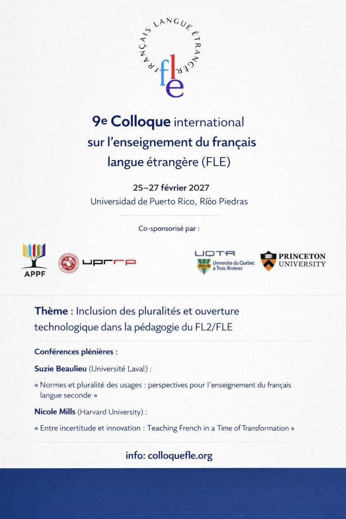 L’Association portoricaine des professeurs de français vous invite à son ASSEMBLÉE GÉNÉRALE ANNUELLE qui se tiendra le jeudi 14 mai 2026 à 18 heures, dans la salle de conférence du Colaboratorio (Foundation for Puerto Rico), située dans le complexe Ciudadela.